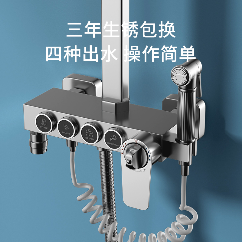 Chrome-plated button three-speed cold and hot version (square rod) Chrome-plated button three-stop thermostatic version (square rod) Chrome-plated button four-stop cold and hot version (square rod) Chrome-plated button four-stop thermostatic version (square rod) Chrome-plated digital display Four-stop thermostatic version (square rod)