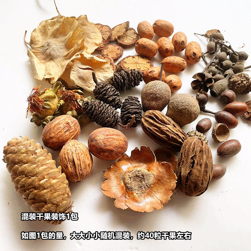 Mixed small dried fruit 1 bag (about 40) mixed dry branch bag (about 10-13 different mix of dry flowers 1 bag (about 11-15 different pieces) Green leaf Composition Set 9 Green leaf Composition Set