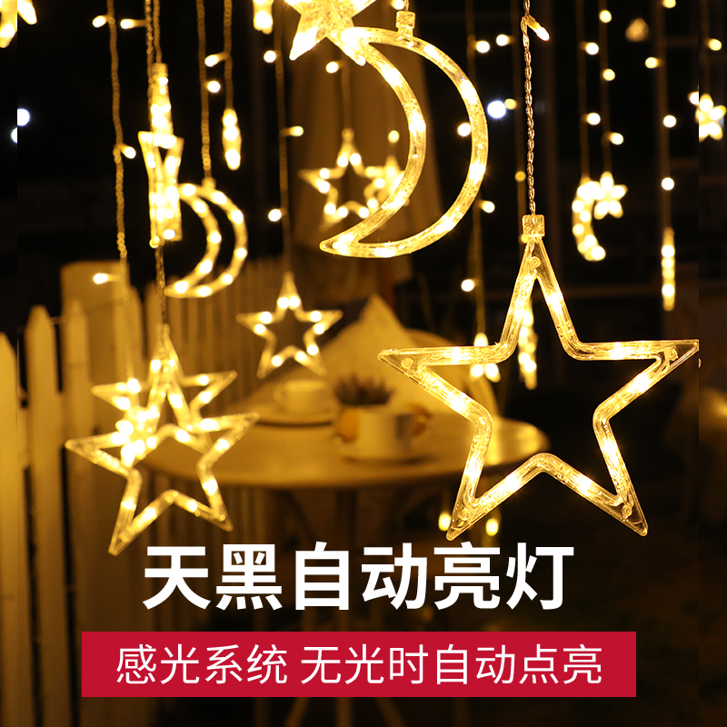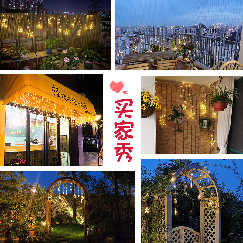 Solar outdoor lights waterproof courtyard garden arrangement colored lights balcony curtain hanging lights with stars decorative light strings