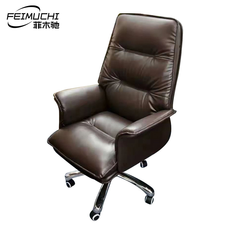 Leather Art Boss Chair Large Class Chair Fixed Armrest Modern Minima President Office Book Room Can Lie High Back Computer Chair