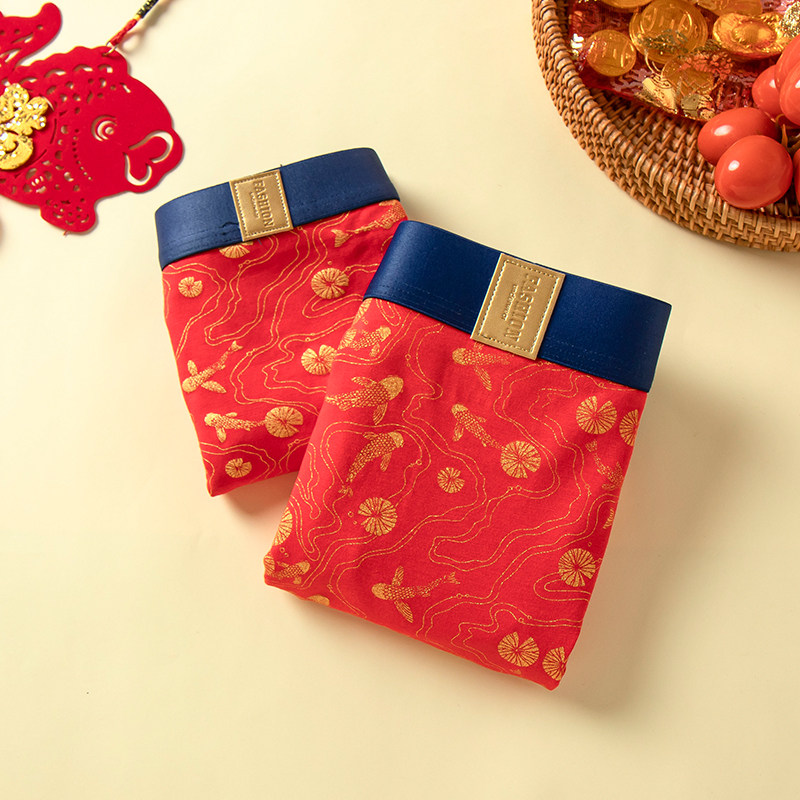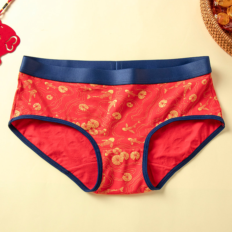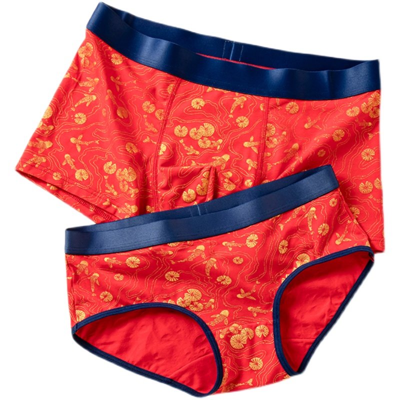 This Life Year Big Red Wedding Wedding Happy Couple's Underwear Modale Pure Cotton New Year Cheerleading Red Male And Female Pants