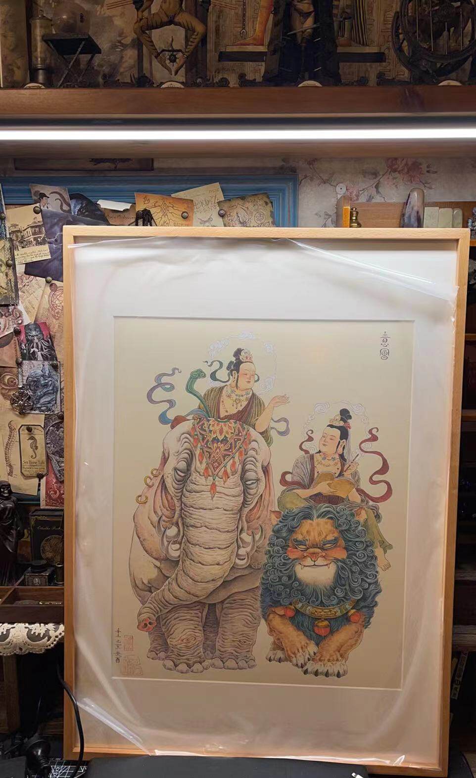 Slag Bear Original Zen Toad Office Family Art Micro-spray Decorative Painting Intentional Red Beech Frame