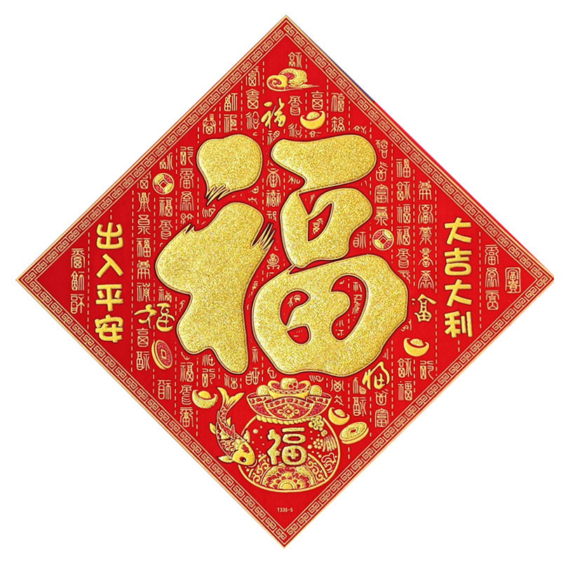 Creative Chinese New Year's New Year Spring Festival Qiao relocating New residence New residence Fu Character Suede Cloth Gate Stickler Decoration Arranged Supplies Window Flower Wall Sticker-Taobao