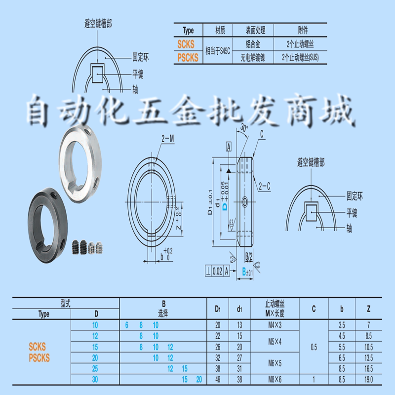 Ring-avoiding keyway type stop SCKS optical axis ring clamping ring lock shaft sleeve bearing limit ring
