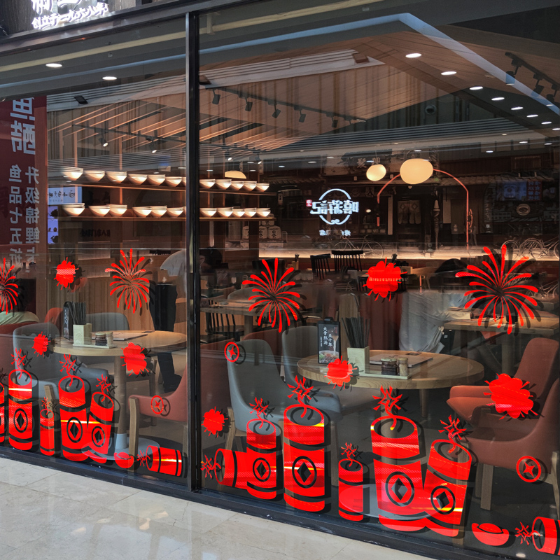 New Year Firecrackers Windows Flower windows applid shop window glass door glued decorations window stices for Spring Festival Spring Festival Scene Placement and painting