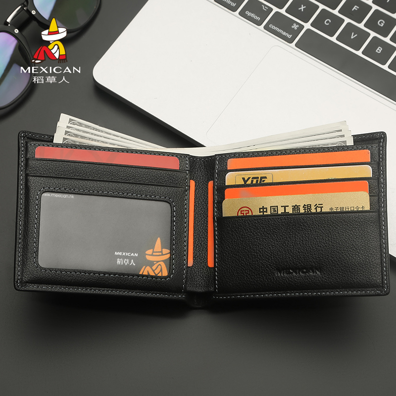 Rice Straw Man Wallet Man Short leather Jane about thin skin clip Youth Korean version Short clip horizontal Folio Bull Leather Money Clip