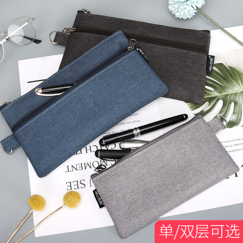 Pencil bag double layer pupil minimal and fresh children pencil box stationery box pure canvas stationery bag male high school high school students with multi-function female cloth flat pencil bag capacity
