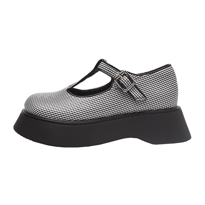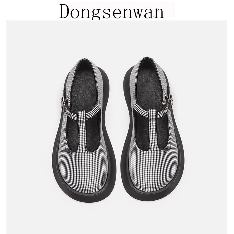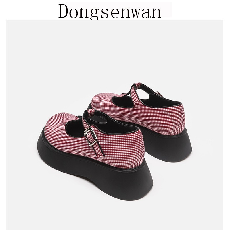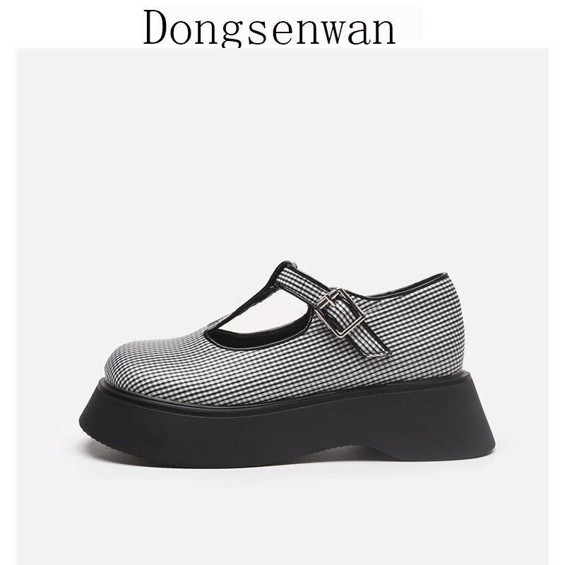 dongsenwan Japanese Mary Jane shoes women's plaid niche design single shoes college style sponge cake thick-soled big-toe shoes