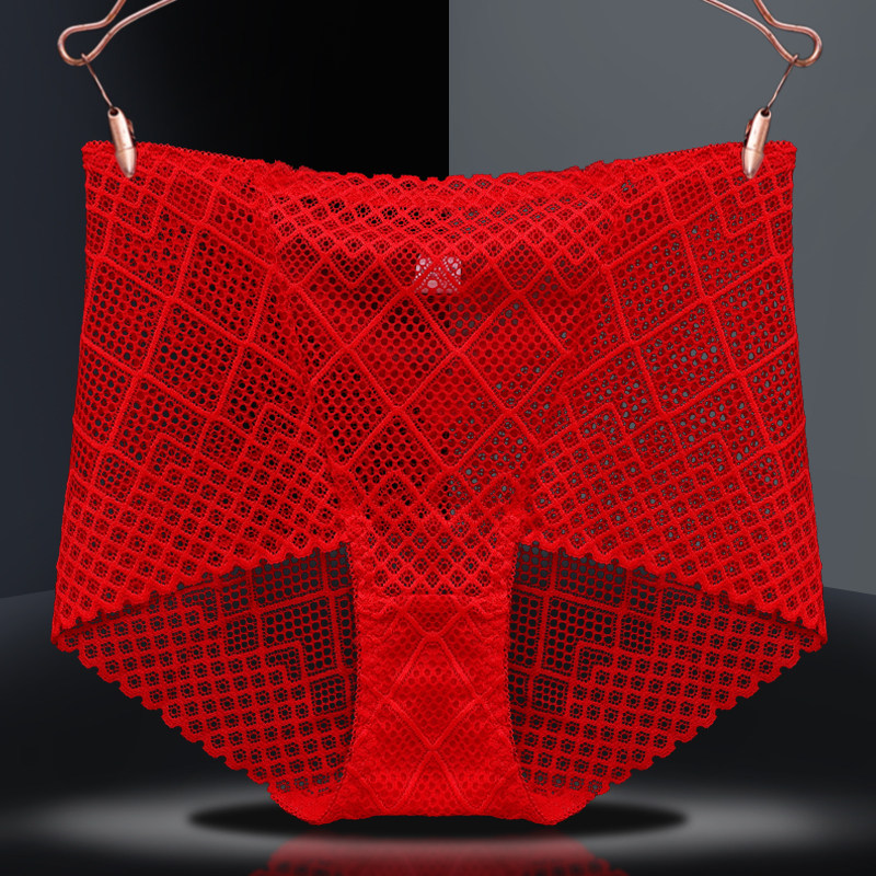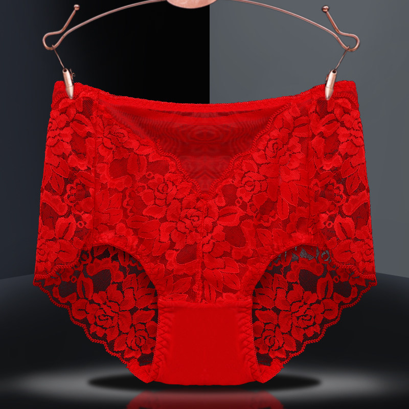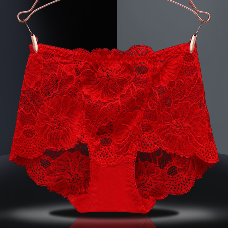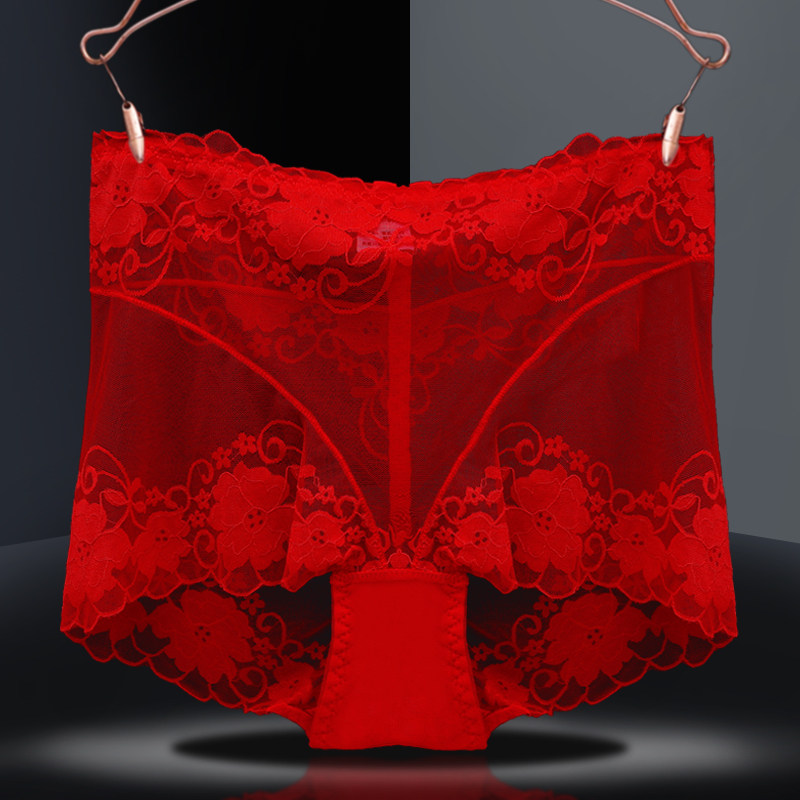 Red briefs Ladies' This life is a tiger girl's pure desire to be sexy and a big code transparent lace pure cotton antibacterial shorts