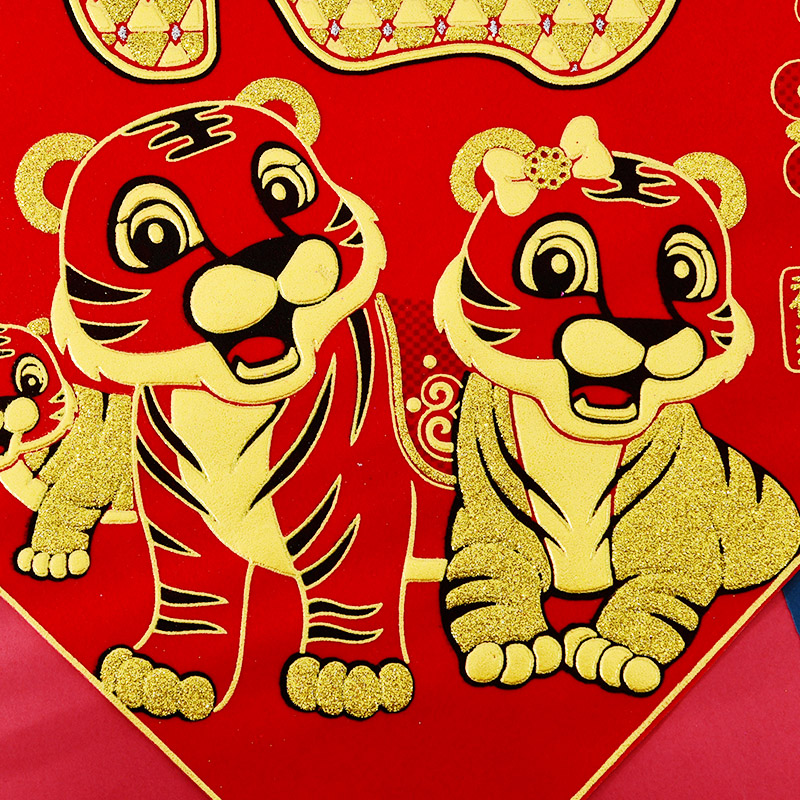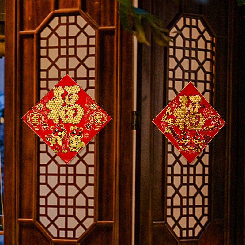New new fine art Spring Festival fu character 2 Zhang 2022 Tiger years sticker decoration door sticker hopper Fang New Year window applique-painting-Taobao