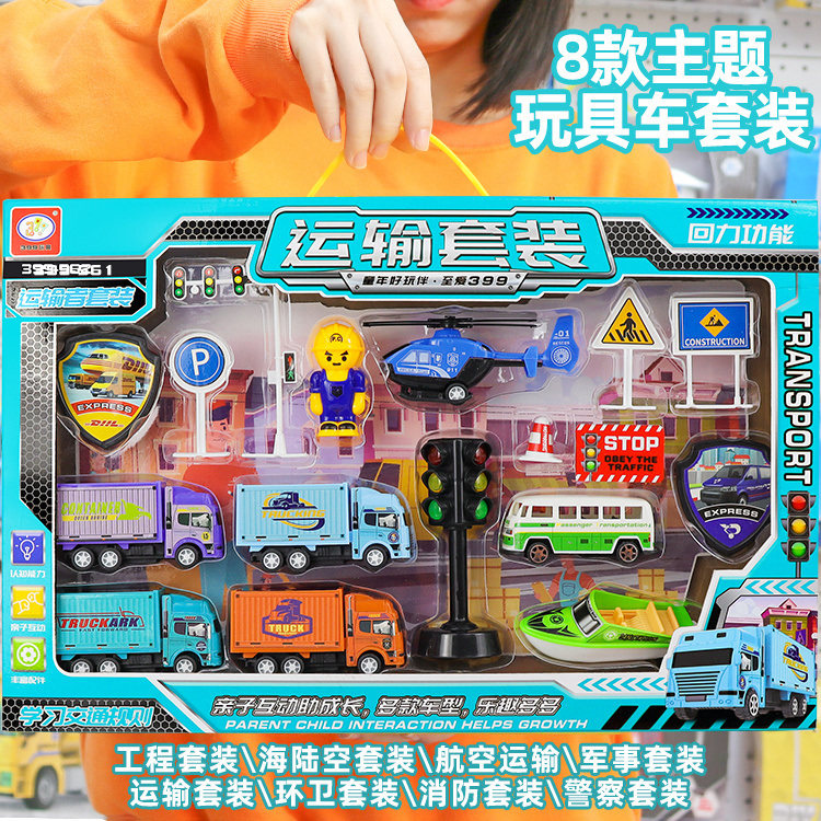 Engineering car (mobile gift box 16 pieces of kit) fire truck (portable gift box 16 pieces) military car (portable gift box 16 pieces) sanitation car (mobile gift box 16 pieces) police car (hands)