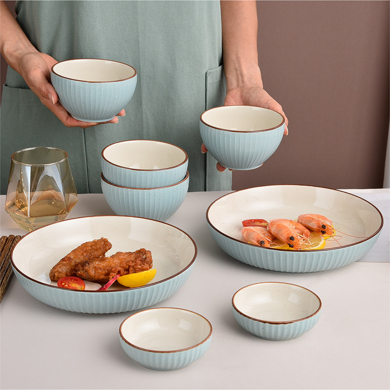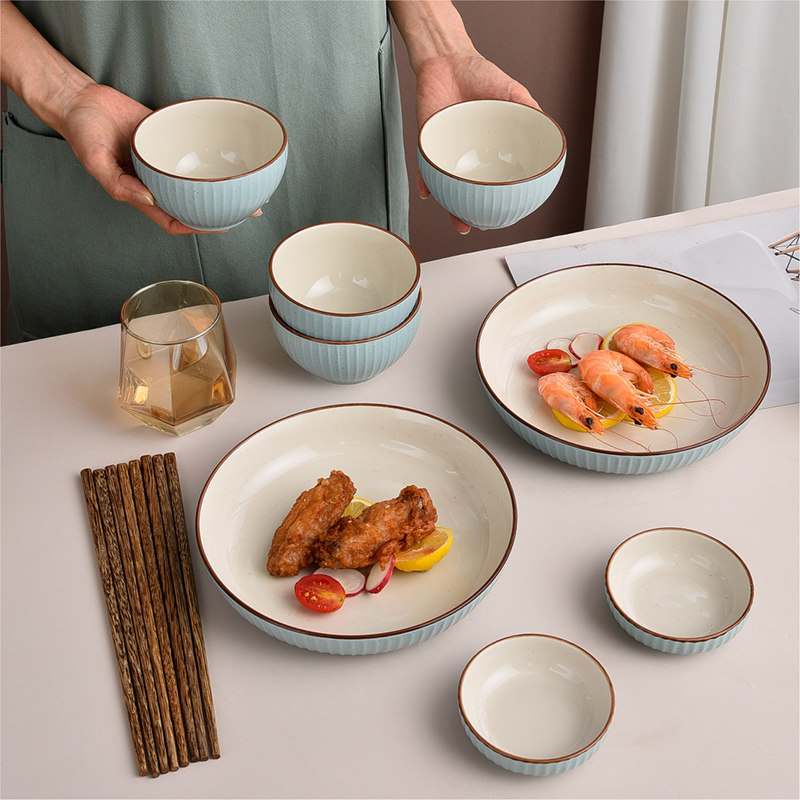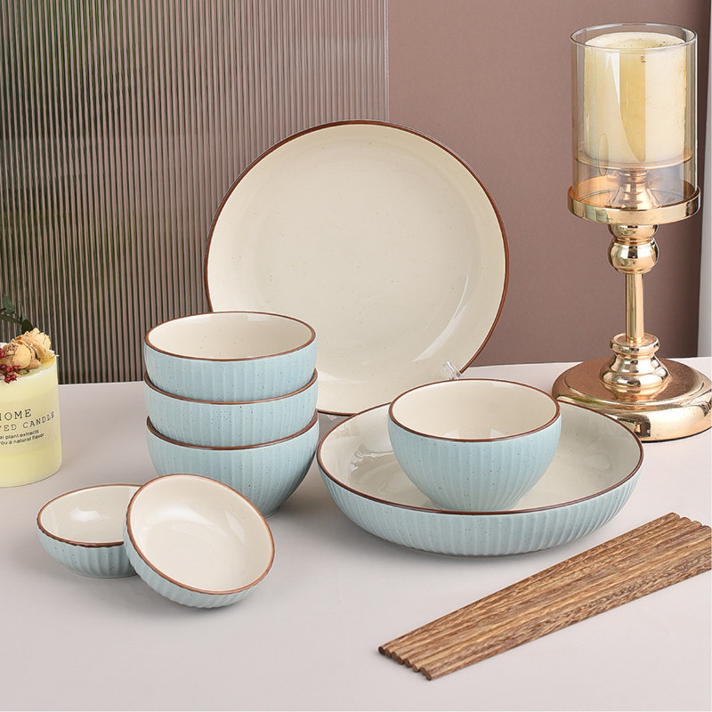 Shangling Ceramic Star River Cutlery 12 Head Han Style Dishes Pan Chopsticks Light Lavish Pure Color Little Clear New Suit Gift Cutlery