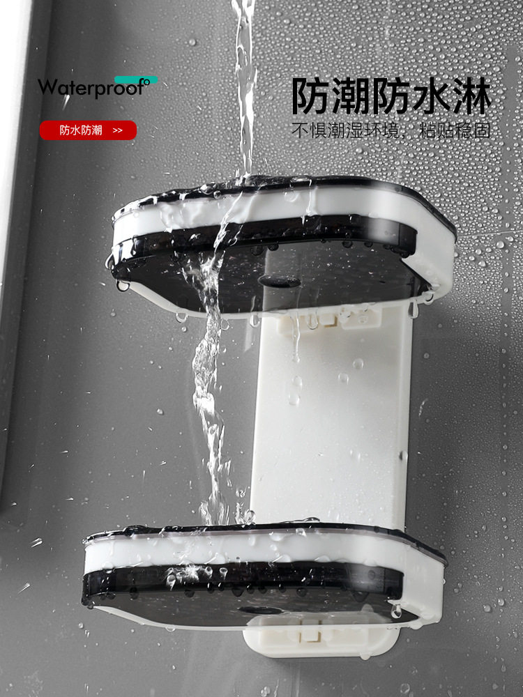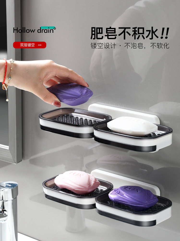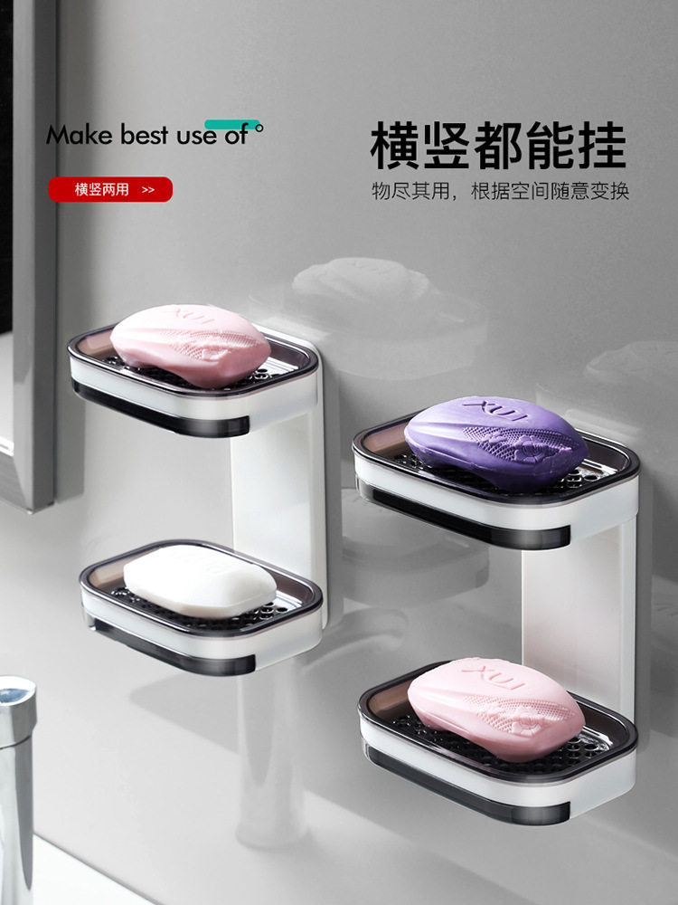 Punch-free soap box soap rack powder room rack suction cup wall-mounted drain creative dormitory home double layer
