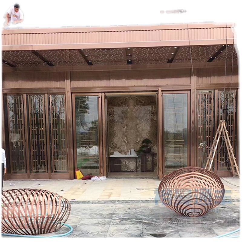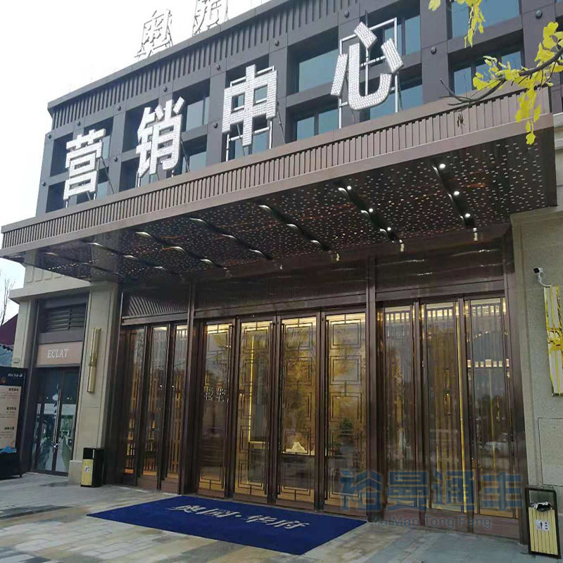 Custom Hotel Dining Room Sample House Display Center Foyer Marketing Center Metal Stainless Steel Door Spring Door Glass Gate