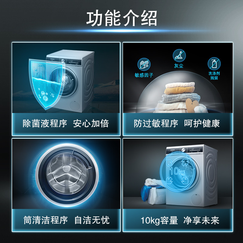 SIEMENS Siemens washing machine 10kg household variable frequency motor drum automatic spin drying WG52A1U30W