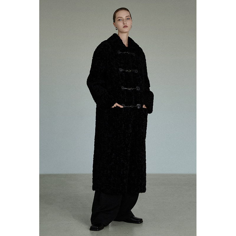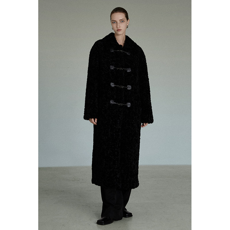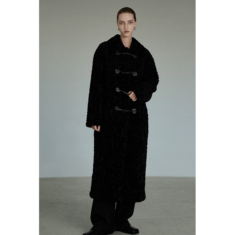 UNSPOKEN black horn button coat women's winter thickened mid-length lamb wool coat high-quality temperament loose