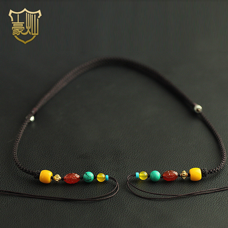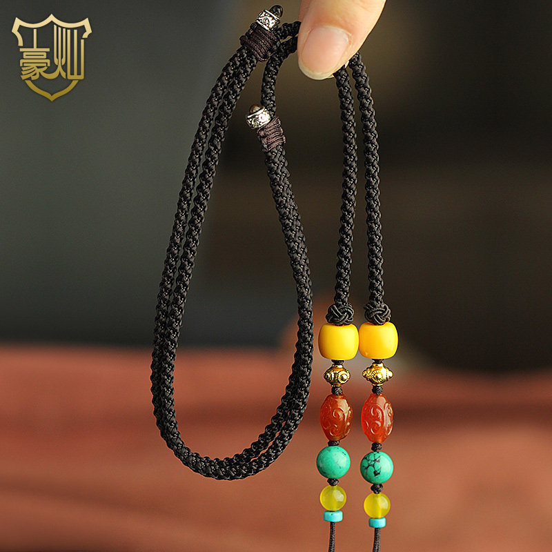 Upscale Manau Zhu sandal honey wax celestial beads cross the vertical wearing of the hanging rope Buddha's jade plate pendant upright wearing a cross-rope necklace