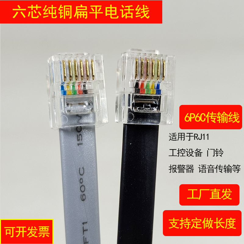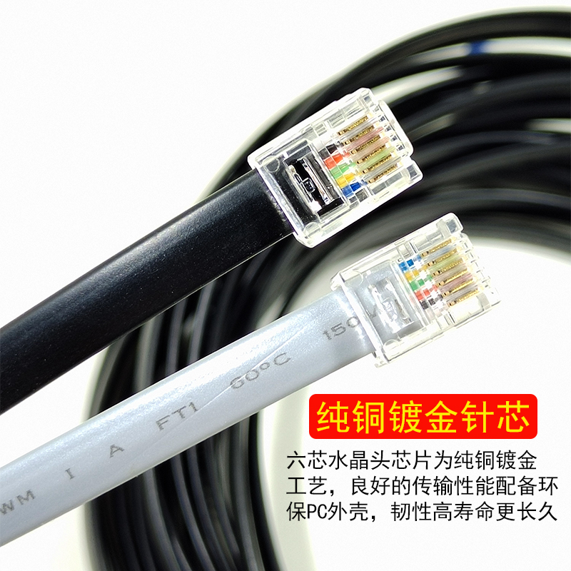 Pure copper 6 Core flat telephone line RJ11 Multi-stock Number control RJ12 data Six core network routes 6P6C connection lines 1 m