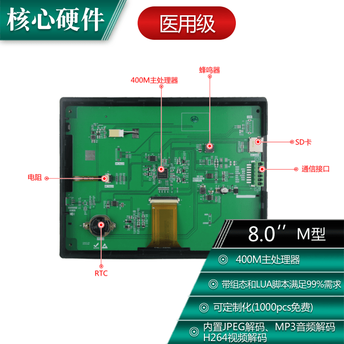 8-inch 800 * 600 touch screen serial port screen with housing medical grade large color liquid crystal screen