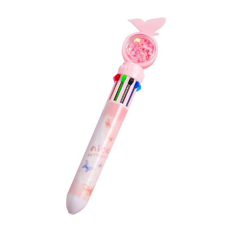 10 color butterfly ballpoint pen student bright sheet all-in-one press-pen exam office multicolored signature pen wholesale