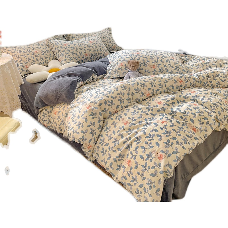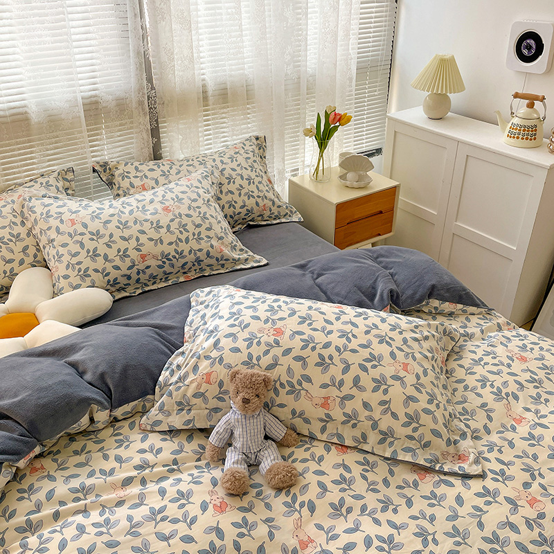 Cotton milk velvet warm bedding quilt cover four-piece thick sheets small fresh coral fleece cotton set