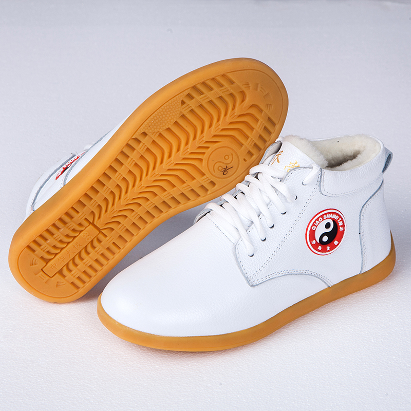 Tai Chi shoes for men and women in winter plus velvet thickened high-tube wool warm cotton shoes soft cowhide beef tendon bottom leather practice shoes