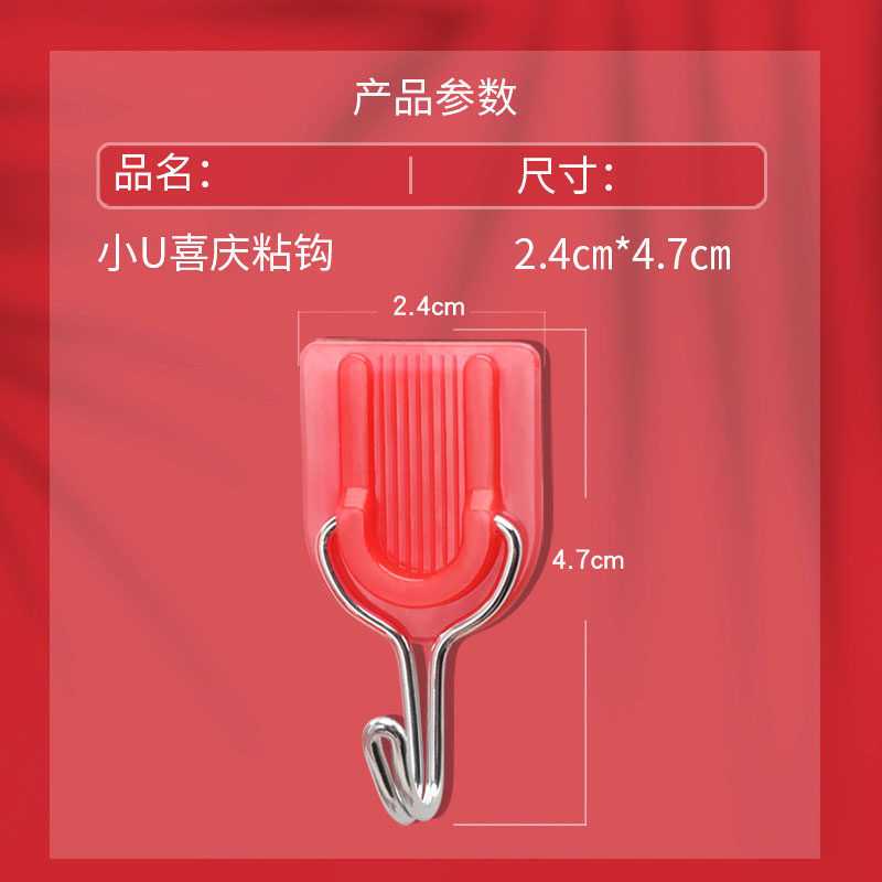 Wedding Festive Hook Red Plastic Small Horn Hook U Shape Powerful Adhesive Glue Wall Hanging Free Hook hook Sticky Hook