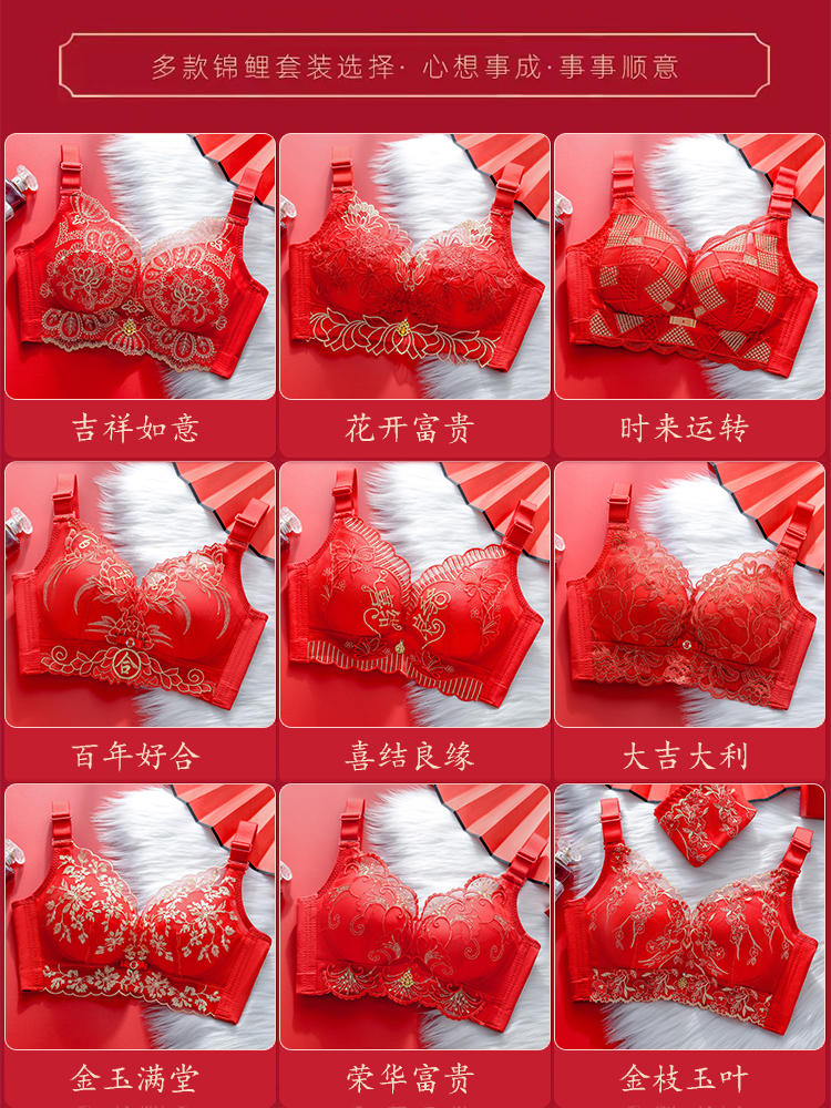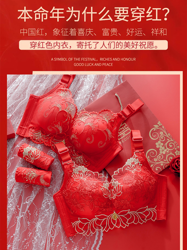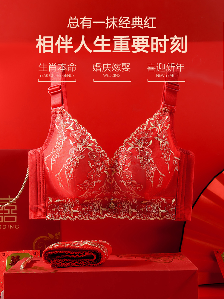 Red underwear set female rabbit year gather small chest marriage with breast bride without steel ring bra