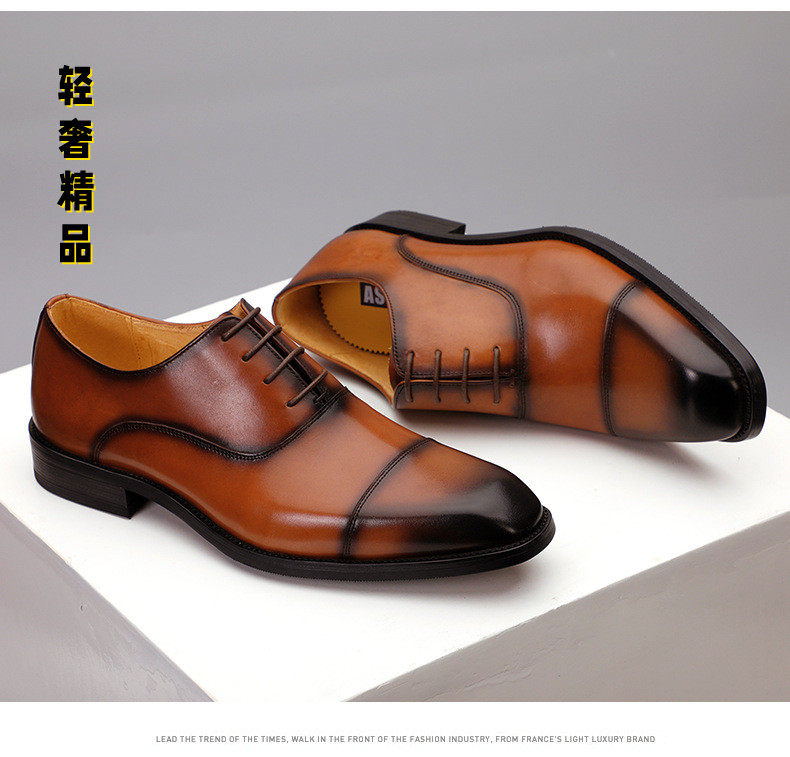 Business formal leather shoes men's leather 2022 new British high-end casual men's shoes three-joint wedding large size shoes