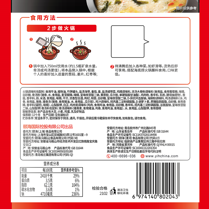 Edible butter, vegetable oil, salted kelp, canned bamboo shoots, tomato, ginger, salted wakame, chicken essence seasoning, thick soup, big bone meal, pork bone, wolfberry, scallops, etc. See the packaging for details