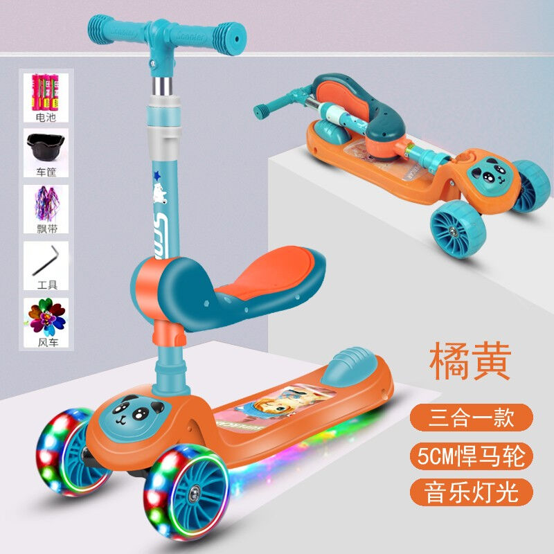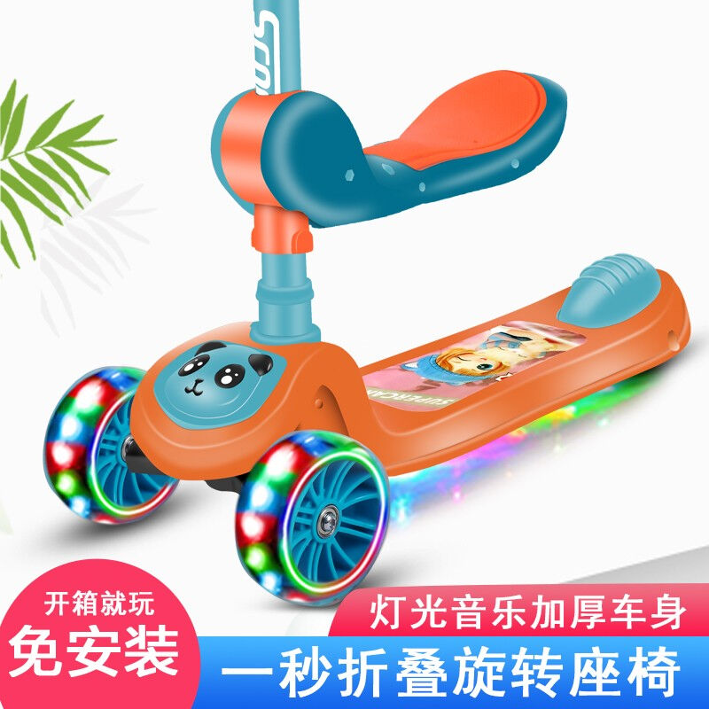 Small children's scooter children's toys 2-3 - 6 - 10 years old baby three or four rounds folded can sit slick music lights