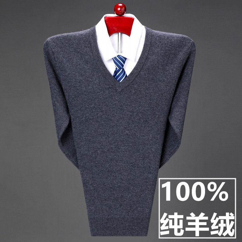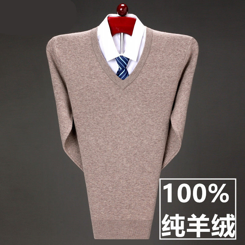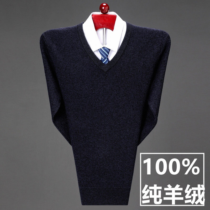 Men's 100 Pure Kashmir Sweater V-neck Autumn and Winter Knitted Bottoming Business Casual Loose V-neck Solid Color Sweater