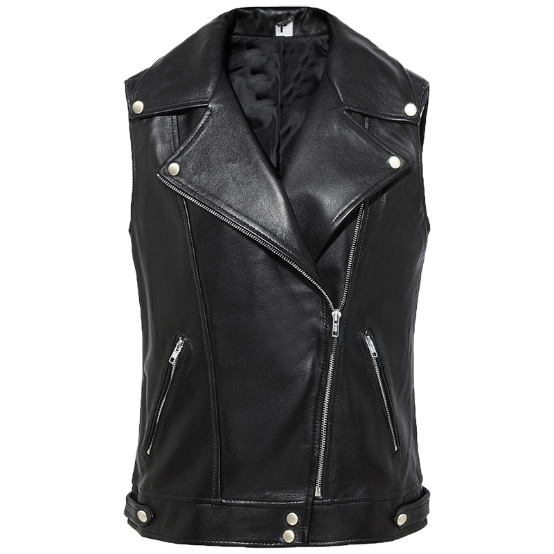 Lady loose genuine leather waistcoat Sheep Leather Clothing Girl Korean version Chater Shoulders Slim Shoulder Vest Youth Jacket