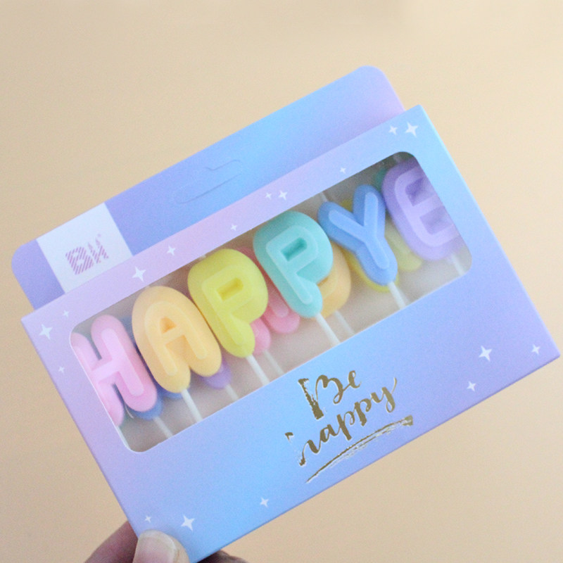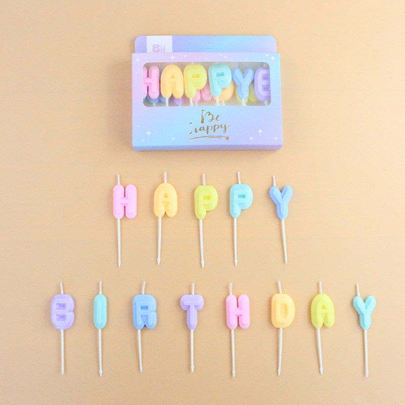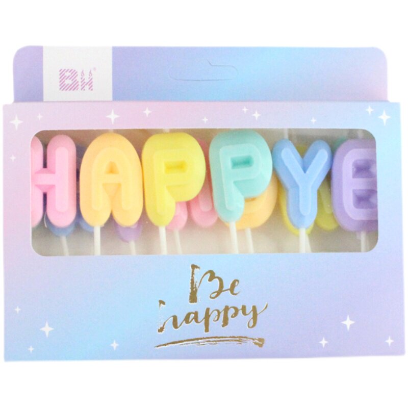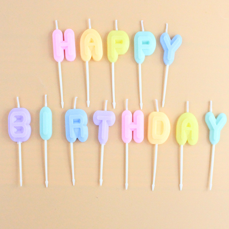 Happy birthday Marcaron colours English letters HAPPY BIRTHDAY cake candles colourful party decorations
