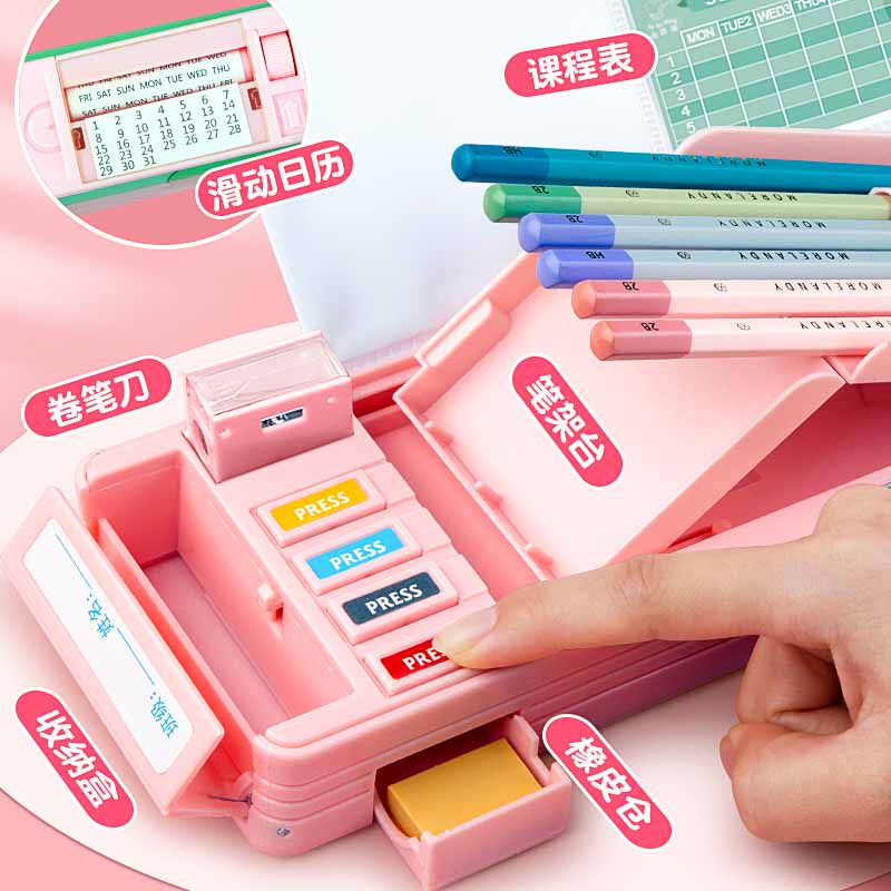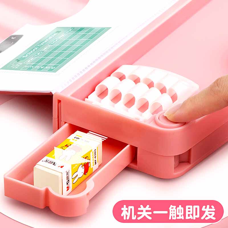 Multi-functional high-tech stationery box pencil box girls third-grade pupils net red black technology net red pencil box kindergarten girls pen box double deck organ pen box girls adorable
