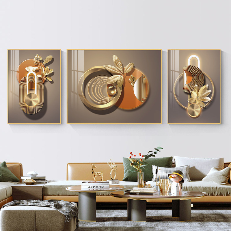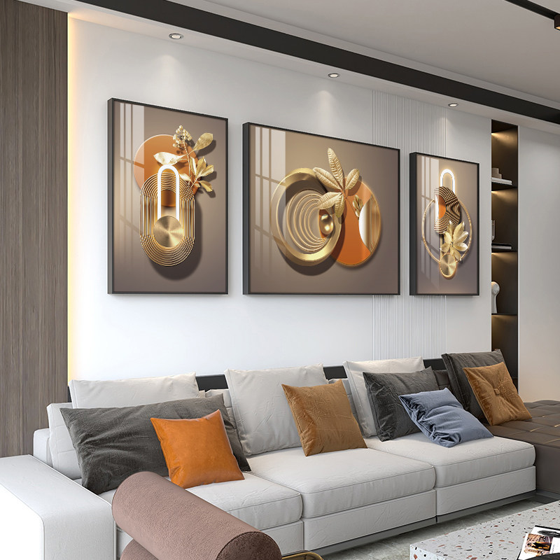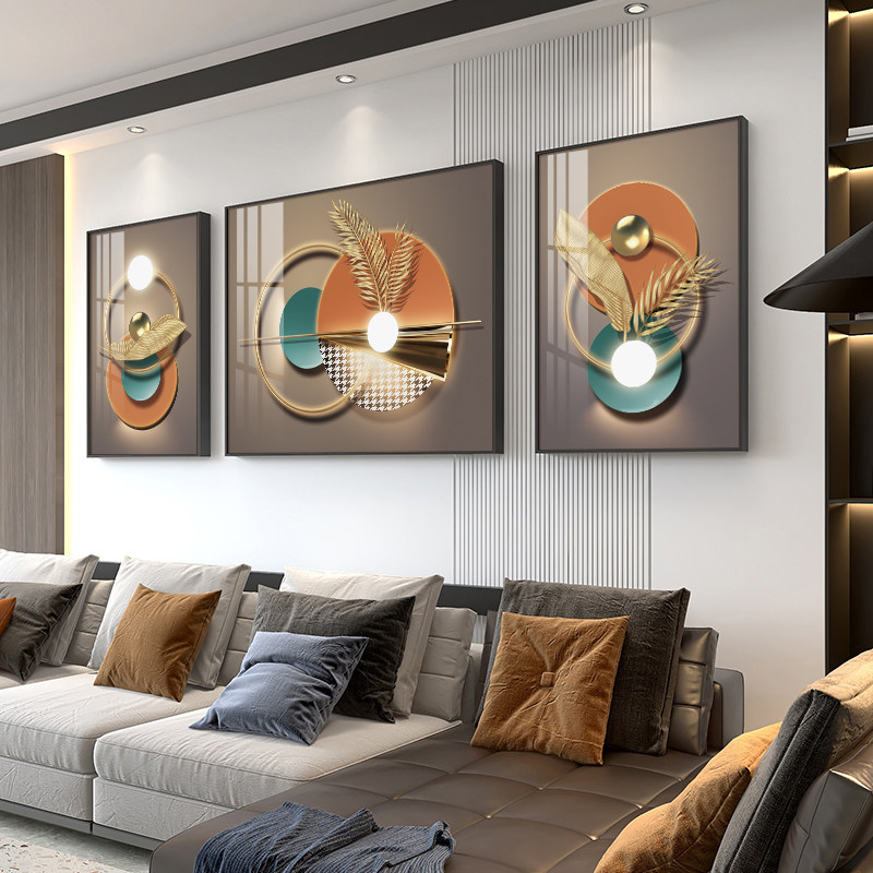 Living Room Decoration Painting Abstract Light Extravagant Sofa Background Wall Mural Crystal Porcelain Painting High-end Dining Room Atmosphere Triptych-Taobao