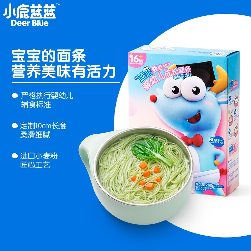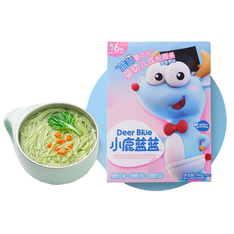 Fawn blue blue baby growth noodles pig liver spinach wheat fragrance original flavor 240g total 8 small bags of baby non-staple food 6 months