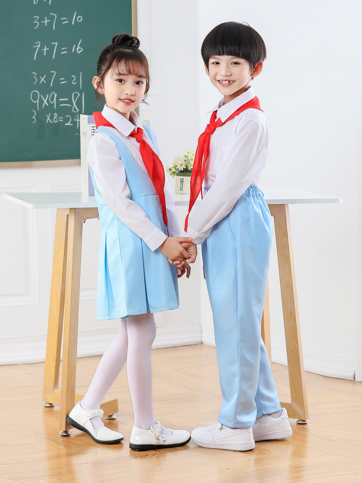 Children's middle and large students poetry recitation blue uniform chorus host flag-raiser performance costume Feng Lin same style