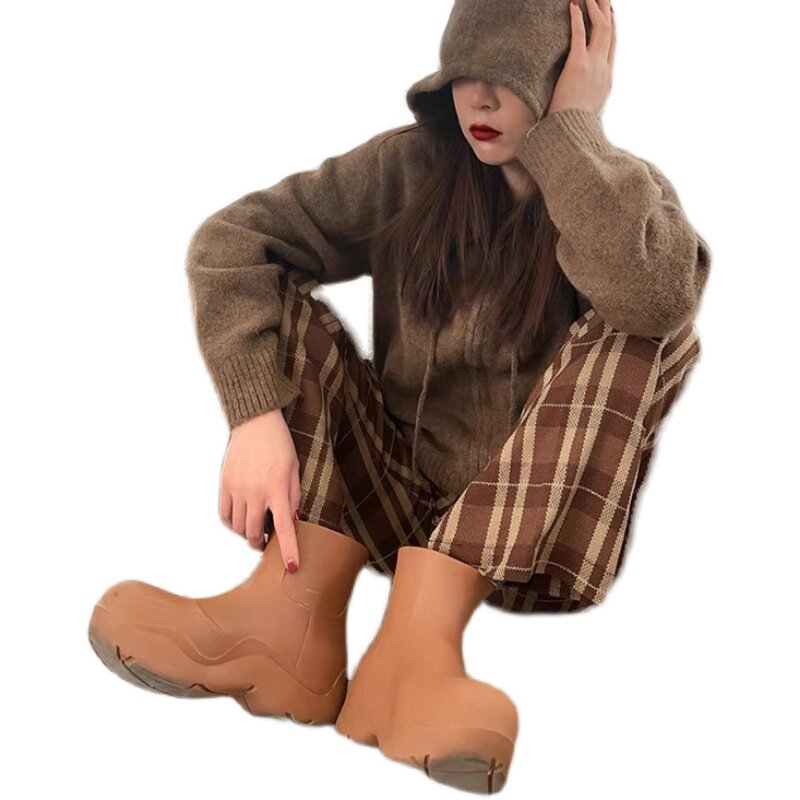 mona the same Axigo outside wearing rain boots to increase jelly shoes rain boots thick bottom Chelsea boots short boots women