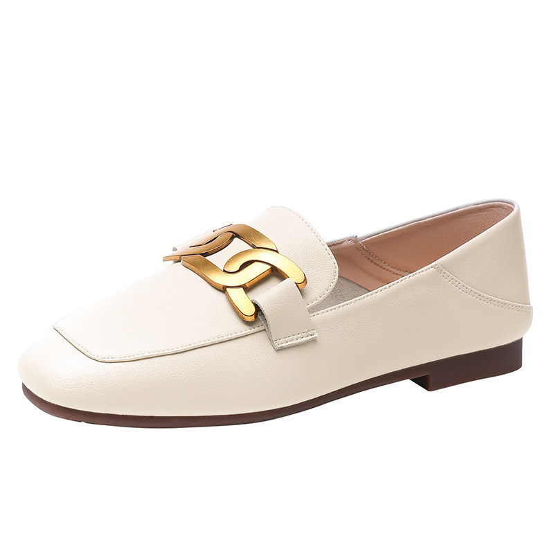 Flat single shoes women's spring and autumn low heel temperament deep mouth British style small leather shoes soft sole soft leather genuine leather square toe loafers