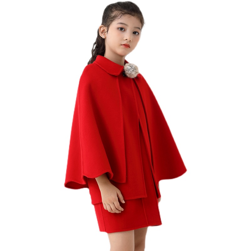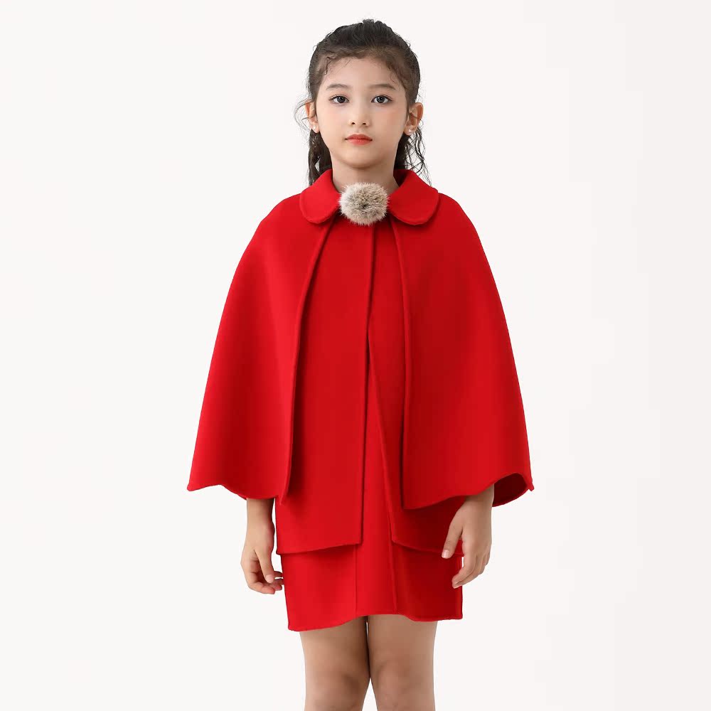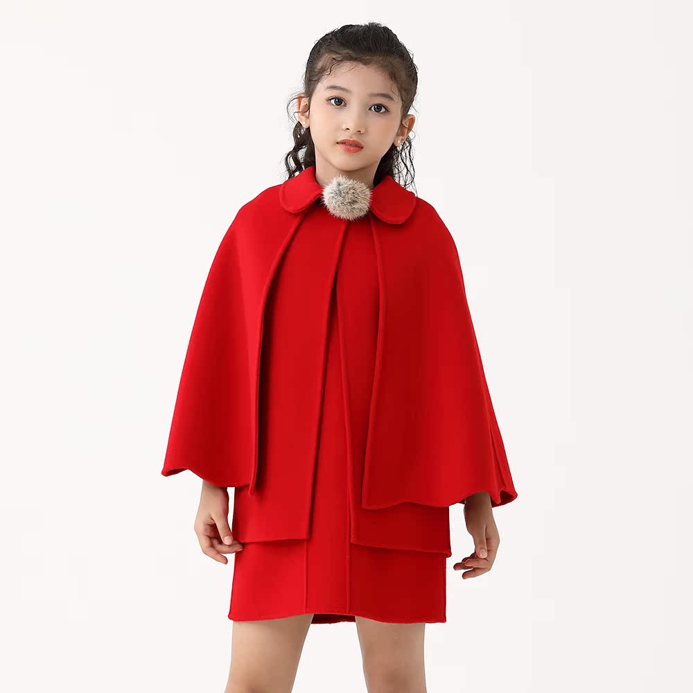 Girl's cloak skirt double face cashmere suit Winter new wool How About the Korean version Pure handmade foreign coat