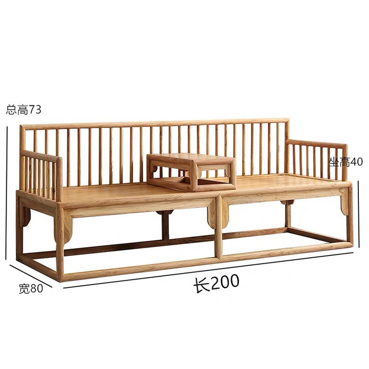 New Chinese style old elm Arhat bed Ming and Qing antique bed living room study three-person sofa chair log Zen simple