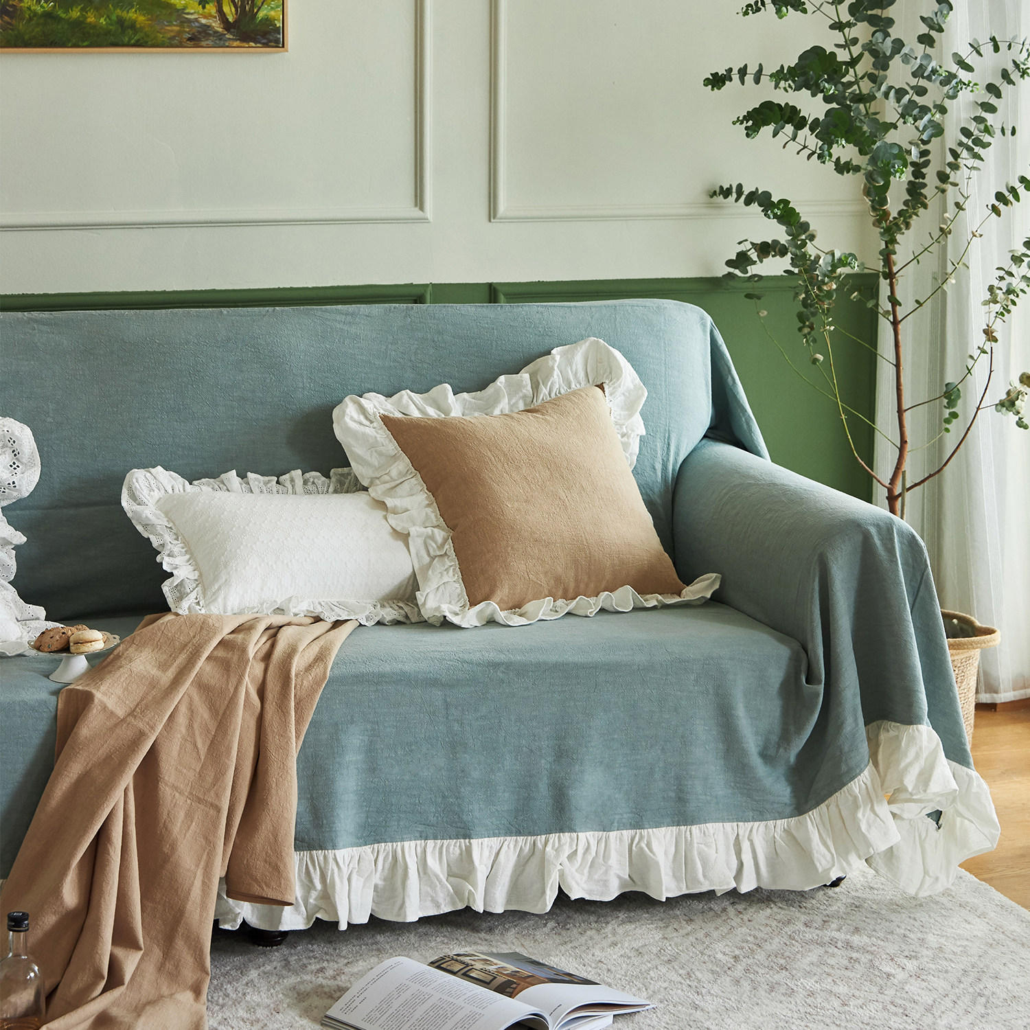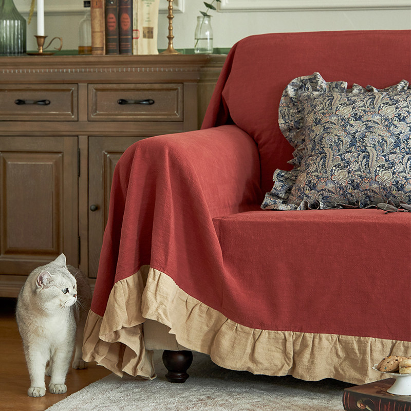 Linen French sofa towel Nordic ins all-inclusive sofa cover four seasons universal living room sofa cover solid color