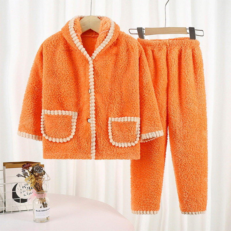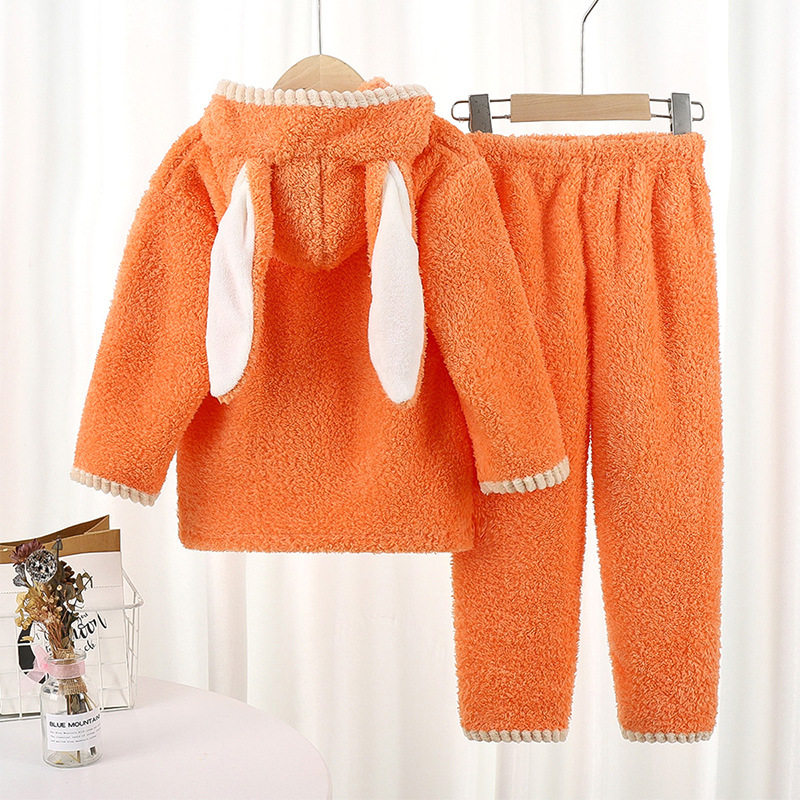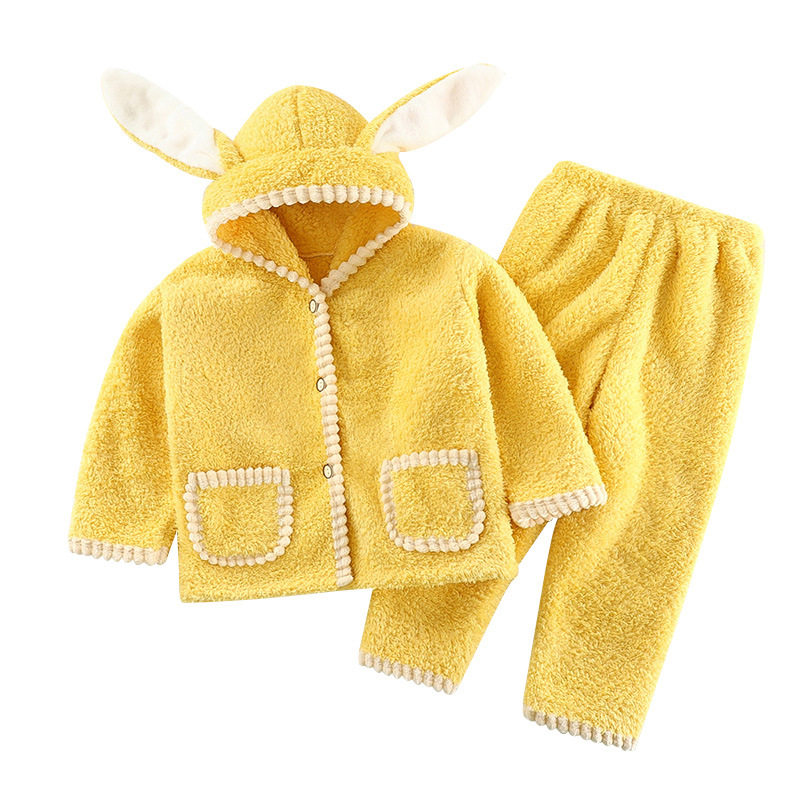 Baby Rice Grain Suede Thickened Warm Home Suit Suit Men And Women Cute Even Cap Pyjamas Toddler Two Sets Winter