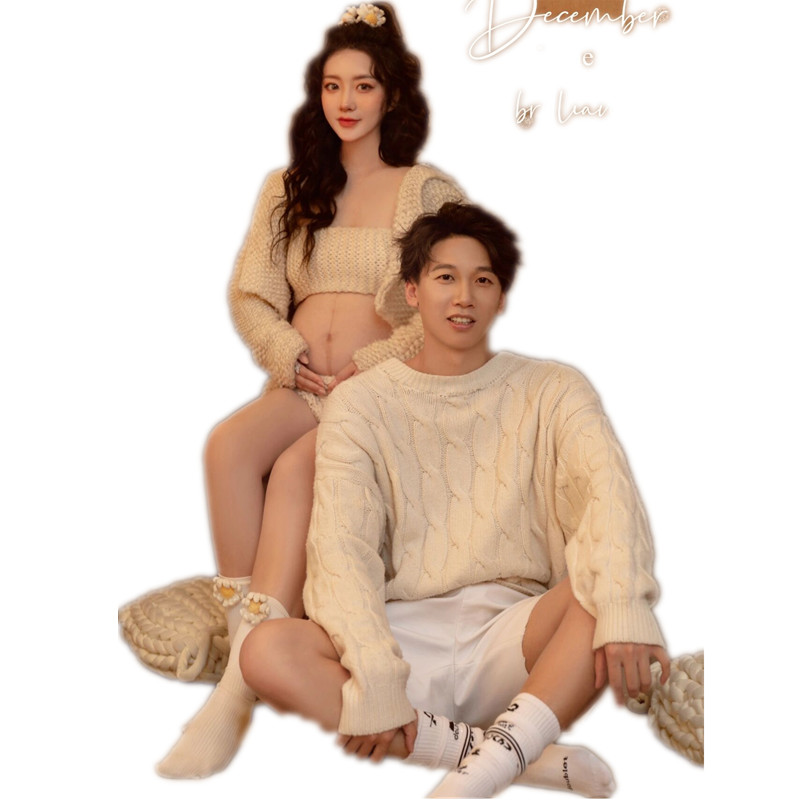New movie The pregnant woman takes pictures of the real couple pregnant women take a rough line of sweater and cute home themed art Costume-Taobao