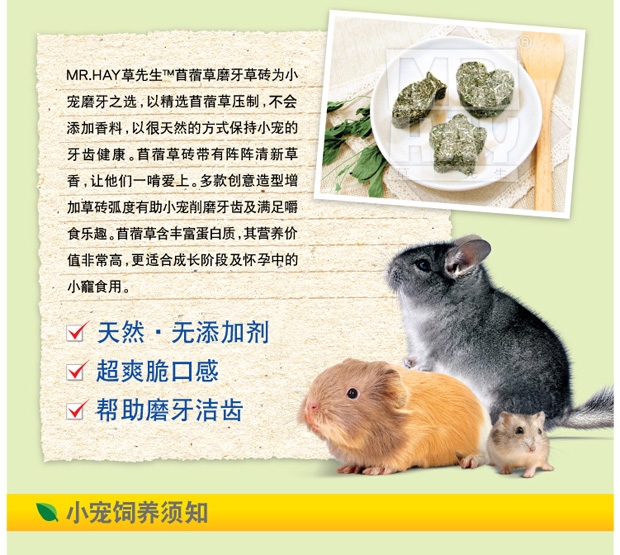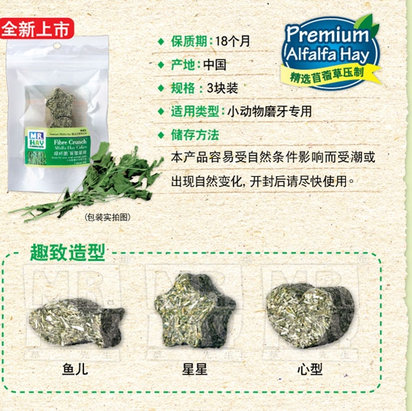 Mr Hay Green Crispy Alfalfa Cake Small (3 Pack) Rabbit Molar Brick Chinchilla Guinea Pig Snacks