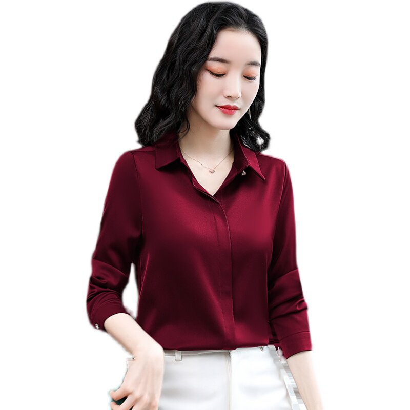 Di Tudun Satin Shirt Woman Long Sleeve 2022 Spring Autumn Clothing High End Workplace Women's Temperament Big Card Satin Top