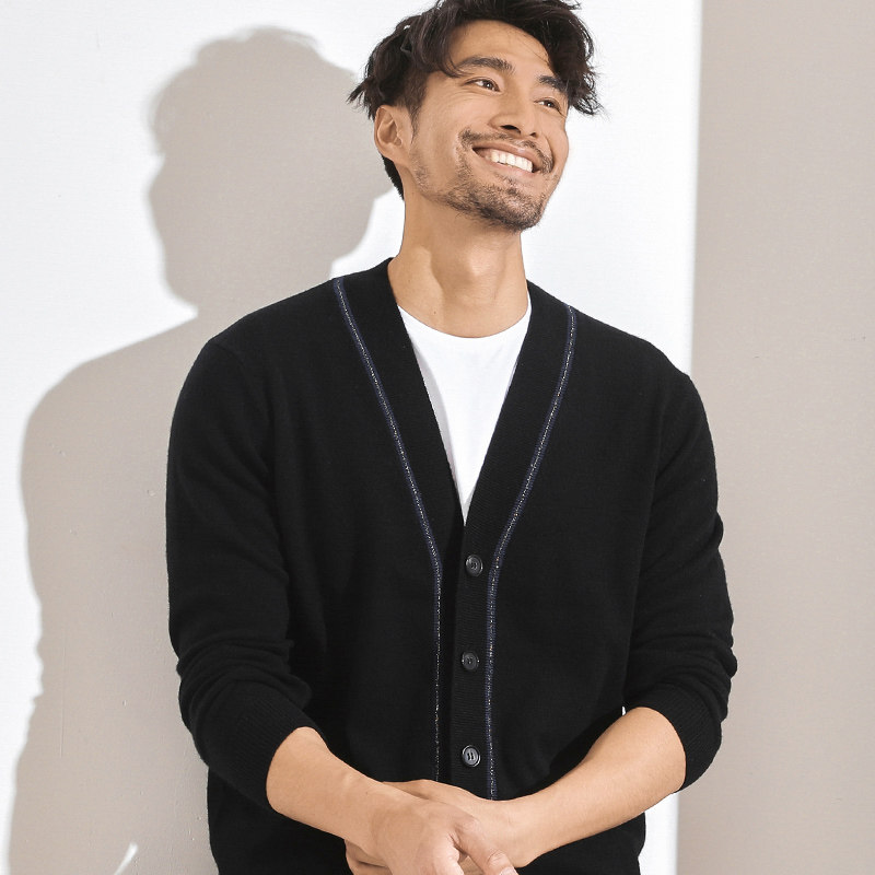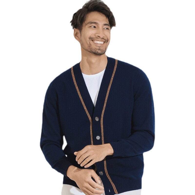 Ordos autumn and winter new 100 pure cashmere sweater men's V-neck cardigan middle-aged and young thick warm sweater jacket