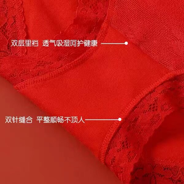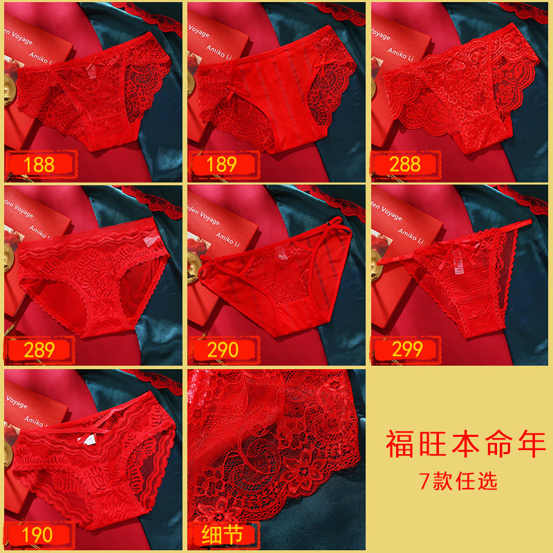 The female zodiac tiger big red underwear female sexy lace low waist ladies sexual temptation comfortable girls pure desire shorts