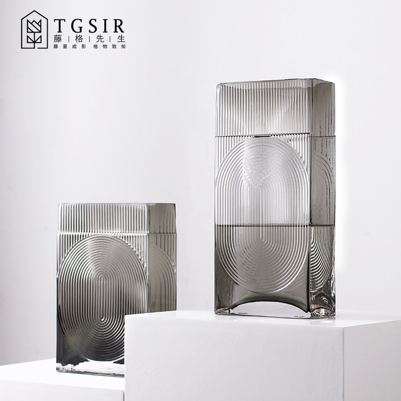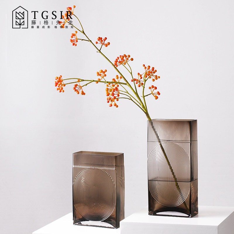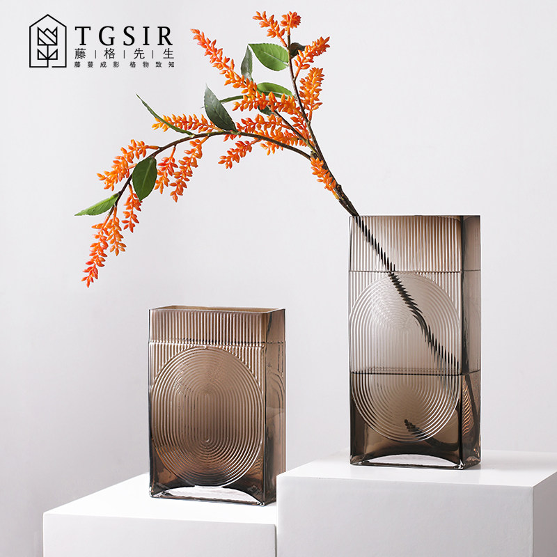 Simple creative square glass vase ornaments living room large diameter flowers hydroponic transparent high decorative flower arranging